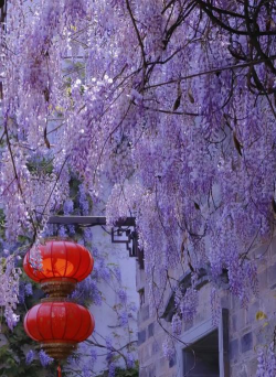 紫藤是藤本植物中的古典代表,紫蓝色花穗如瀑布垂悬,寓意吉祥长寿。百年古藤常见于江南园林,盆栽紫藤亦可打造蜿蜒古朴的盆景,花香馥郁,适合装点廊架或庭院。