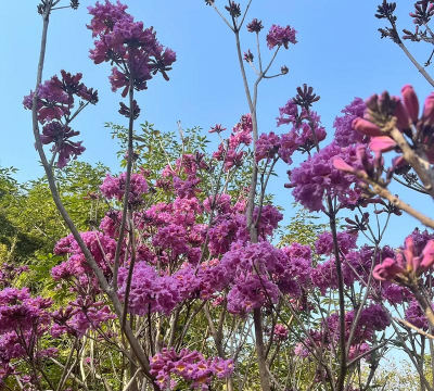 赏花区域:公园内部分区域种植紫花风铃木,花期在12月至次年3月,花朵呈绣球状,浪漫雅致。