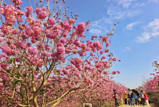 最佳赏花时间:春季(3-4月)是玫瑰、格桑花、桃花等的主要观赏期,而簕杜鹃和紫花风铃木则覆盖其他季节。