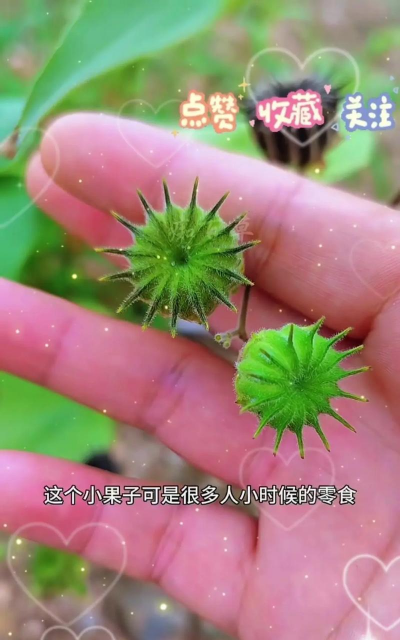 苘麻蒴果半球形,直径大约2厘米,长1.2厘米,顶端具有短尖。
