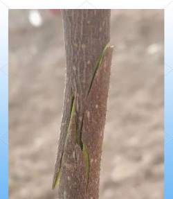1、单芽腹接:在截取的枝条上选择一个芽,把削好的芽片嵌入到砧木接口处,然后用塑料布包裹紧实。