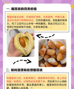 榴莲籽可以吃,不影响口感。榴莲籽食用方法:榴莲籽炖排骨:排骨、榴莲籽洗净,放入锅中,加入、盐、蒜、鸡精、香葱、料酒,炖煮2小时即可;榴莲籽粥:大米、榴莲籽洗净,放入锅中,加入盐、鸡精、香葱,熬煮40分钟即可;清水煮榴莲籽:榴莲籽洗净,放入锅中,煮20分钟,捞出冷却即可。