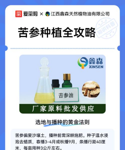 土壤要求:苦参为深根性植物,宜选择土层深厚、肥沃、排水良好的砂质壤土或粘质壤土,pH值以中性或微碱性为佳。避免低洼积水地块。