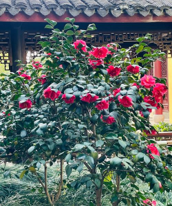 茶花(山茶花)金华、温州是主要栽培中心,花型多样,耐寒性强。