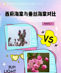 花朵区分:西府海棠花梗较短,花瓣颜色为粉红色;湖北海棠花梗较长,花瓣颜色为粉白色;树干区分:西府海棠直立树干约高两米,湖北海棠树干较高,约8米左右;果实区分:前者果实略大一点,颜色是红色,后者颜色为黄绿色略带一点红晕。