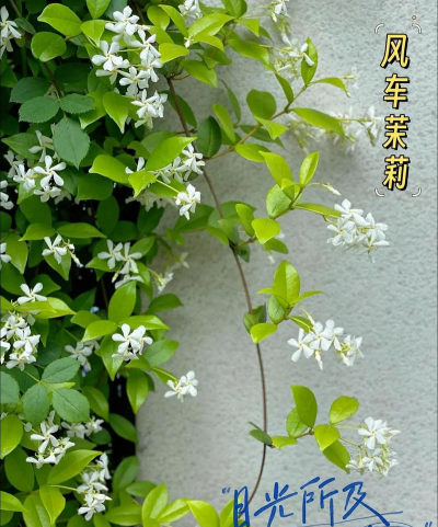 一般情况下风车茉莉一年会开一次花,如果养护的环境温暖的话,可以提前开花。风车茉莉又称络石、石龙藤、万字花、万字茉莉等,是夹竹桃科、络石属的被子植物,它的花语是万德吉祥。
