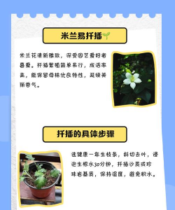 米兰的生长旺季在春夏季,因此扦插最好也选在春夏季进行。若是用老枝条作插枝,最好选春季4-5月进行扦插,若是选用当年生的新枝作插条,最好选6-8月之间进行扦插,这两个时间段的气候环境适宜,扦插后可保证很好的生长,也方便管理。