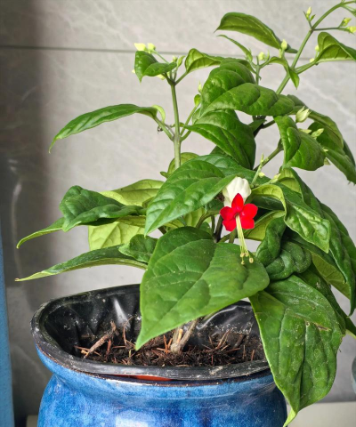 龙吐珠的盆栽花卉非常漂亮,乳白色与红色搭配,就好像是龙吐出来了七龙珠一样,看起来令人震惊。此外,它在风水学中也有着众多好意头的含意,是现代家具室内空间内必养的绿植之一。