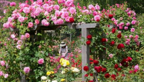 红色龙沙宝石,耐热又耐晒,而且持续开花时间很长,家里有庭院的养一棵,顺着墙壁爬上去,非常漂亮了!