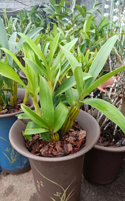 3、浇水:鼓槌石斛喜湿度高的环境。成长速度比较快的时候,一定要一直保持基质的湿润程度。在温度高、且比较干燥的晴天时,还需及时喷洒一些水分。