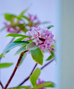 凹叶瑞香的叶片边缘反卷,叶片尖端较钝且有一个小凹缺,养殖凹叶瑞香时,需要将植株放置在光线明亮处,促进其进行光合作用,使凹叶瑞香快速开花。