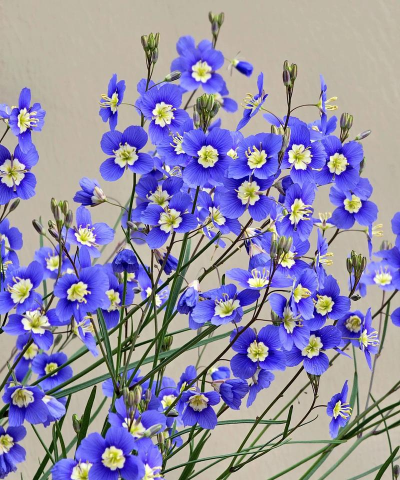 以淡蓝色为主,象征永恒与忠诚,常用于花束或庭院装饰。