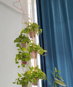 夏天把绿萝、常春藤养成瀑布窗帘不算本事,厉害的花友能把蓝雪、铁线莲当窗帘养,一朵朵花垂挂在窗前,太美了!