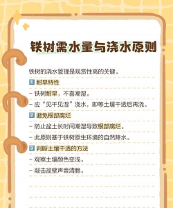 铁树浇水的正确方法需根据季节、环境及生长阶段灵活调整,以下是综合多个来源的实用建议: