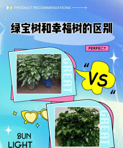 区别:绿宝树和幸福树属于同一科属,绿宝树的树皮是浅灰色,花萼与花冠色彩不一致,前者是淡红色,后者是淡黄色,它有淡黄和白绿两种颜色的花。幸福树树皮浅灰色,花冠有淡黄和白色,它的叶缘是光滑的,绿宝是带有锯齿的。