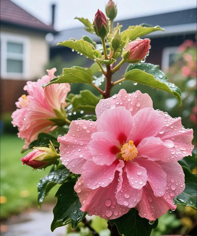 醉芙蓉(三变花):重瓣品种,花色随气温变化(白→桃红→深红)