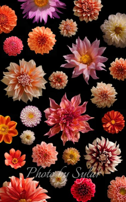 大丽花 :花色丰富(红、紫、白、黄、橙等),花瓣形态多样,重瓣品种开花时间长,常用作切花。