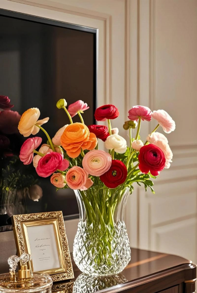 花毛茛(又称洋牡丹、芹菜花)因其丰富的花色和独特的重瓣花型备受喜爱,园艺品种繁多,以下为常见品种分类及特色介绍: