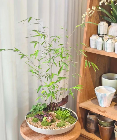 荷叶竹大多是水培,需要遮阴放置在温暖的地方,尤其不能暴晒,放在室内是很合适的。