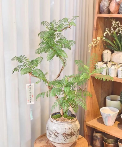 文竹的细小分支很多且光滑,叶状枝呈絮状团簇分布,像羽毛一样飘飘然,茎叶部实力诠释了刚柔并济、自在飘逸。文竹喜欢在温暖湿润的环境中生长,但是他不耐严寒和干旱,需要控制气候和浇水,适合在室内种植。