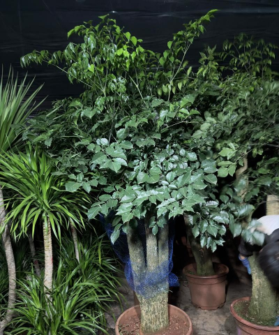 富贵树的叶子属于2回至3回的羽状复叶,叶子形状为卵形或卵状披针形,长度约为4-7厘米左右。