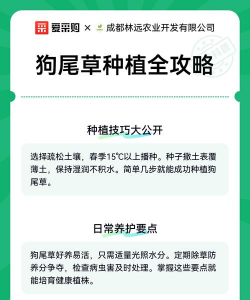 种子传播:成熟种子易随风扩散,需适时采收以防过度蔓延。通过以上步骤,可成功种植狗尾巴草,适用于观赏、护坡或牧草等用途。如需种子购买或具体技术咨询,可联系相关种业公司(如长景园林或山东瑞禾种业)。