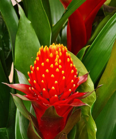 果子蔓一生只在春季开1次花,花茎常高出叶丛20厘米以上,花茎、苞片及近花茎基部的数枚叶片均为深红色,保持时间甚长,观赏期可达3个月左石。