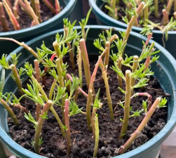 茉莉花:半木质化枝条保留2片叶,扦插后20天生根,适合密插促爆盆。