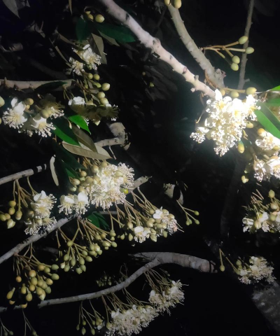 榴莲的花期集中在6-12月,与果实成熟周期重叠,主要在夜晚开放。
