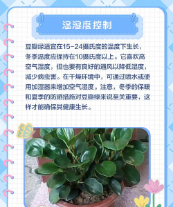 4、温度:豆瓣绿喜温暖环境,生长适温为20~30℃之间,越冬温度最好保持在10℃以上,10℃以下停止生长,5℃以下易冻害。