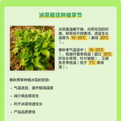 选择合适的季节 :冰菜最适合在春秋季节种植,因为这两个季节的温度适宜,既不太热也不太冷。