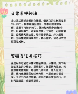 光照:吊兰喜光,需要放置在有充足散光照射的地方,促进植株的光合作用。夏季需要做遮阴处理,避免强光暴晒。