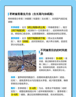 枣树修剪的时间主要在冬季和夏季两个时间,冬天的时候最好是在落叶之后,尽量在发芽之前修剪完成即可。夏天的时候因为植株发芽的时间不是固定的,所以要多次进行修剪,大概是在5-6月份之间。