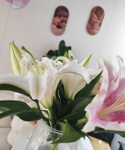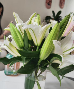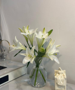 4、装水养护:在花瓶中注入适量的清水,将百合花枝养在水中。