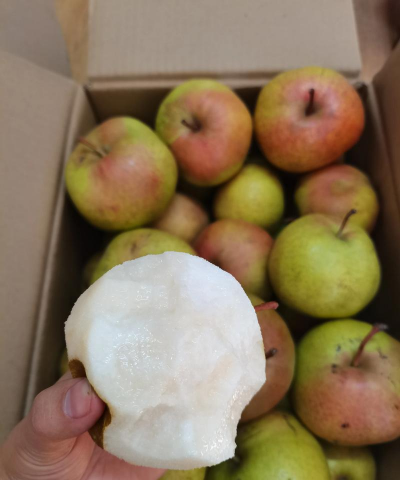 苹果梨的外皮也更接近苹果,比较硬,有果穗,而梨则多是柔软光滑无果穗。