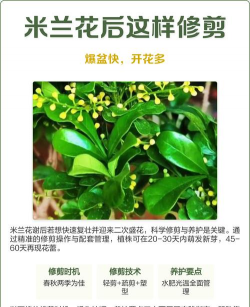 1、及时修剪:为了保持米兰花的茂盛,应及时修剪,不要拖延时间,以便及时给予植物所需的养分。