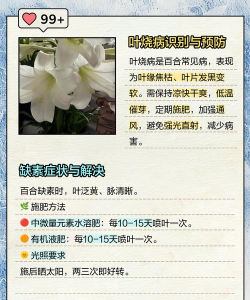 2.注意植物的疾病:一般地,百合植物的疾病大多为真菌性疾病,尤其是在炎热多雨的季节,容易受到真菌病害的侵袭,因此应该及时加强植物的保护,采取有效的防治措施。