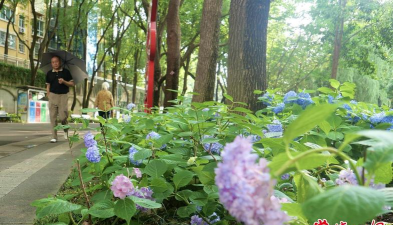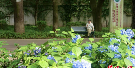 夏季:藤本月季(4000余株)、无尽夏绣球花(5000余株)、墨西哥鼠尾草(蓝紫色花序)及萱草、紫姣花等,打造层次丰富的花境景观。