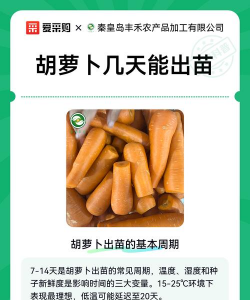 种胡萝卜一般一周左右的时间能出苗,发芽。想要它如期出苗,要注意种植方法以及平时的养护管理。栽种的时候要用合适的土壤,保证土壤肥沃,疏松,排水性好的。种植的不可太深,覆盖薄薄的一层土就行。种下后保湿处理,还要勤施薄肥,肥水足长势会更加旺盛。此外,还要注意病虫害的防治。