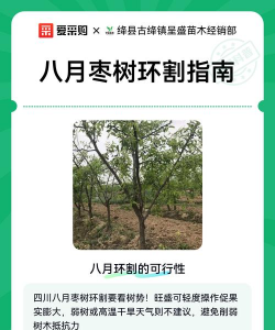 枣树在环割时,不宜在阴雨天气进行,环割好后,需要用塑料膜将它的伤口包扎好,这样可以避免它的伤口接触到水后腐烂,之后养护枣树的时候,需要加强水肥方面的管理,促使枣树能够旺盛的生长。