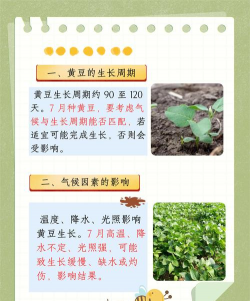 黄豆一般是在7-8月左右时成熟。黄豆这种植物有许多不同的人为栽培品种,根据其品种的不同而有着不同的采收时间,但一般来说最普遍的成熟时间是在每年的7-8月左右,中国大部分产区的大豆和美国大豆都是这个时候成熟。