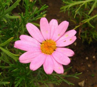 玛格丽特花叶宽卵形、椭圆形或长椭圆形,二回羽状分裂。一回为深裂或几全裂,二回为浅裂或半裂。舌状花瘦果有3条具白色膜质宽翅形的肋。两性花瘦果有1-2条具狭翅的肋,并有4-6条细间肋。冠状冠毛长0.4毫米。花果期2-10月。盆栽观赏,或作背景绿叶材料布置。