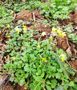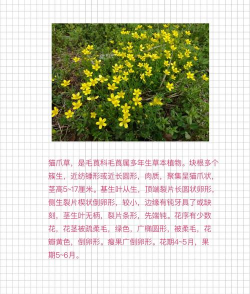 猫爪草,是毛莨科毛莨属多年生草本植物。块根多个簇生,近纺锤形或近长圆形,肉质,聚集呈猫爪状,茎高5~17厘米。基生叶从生,顶端裂片长圆状卵形,侧生裂片楔状倒卵形,较小,边缘有钝牙具了或缺刻,茎生叶无柄,裂片条形,先端钝。花序有少数花,花茎被疏柔毛,绿色,广椭圆形,被柔毛,花瓣黄色,倒卵形。瘦果广倒卵形。花期4~5月,果期5~6月。