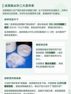 1、大豆在开花结荚后,对于磷、钾、钙、镁、锌等营养元素的需求量逐渐加大,此时打叶面肥比较合适。