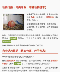 苹果种子可以通过动物传播。这些植物利用其鲜艳的外观和甜美的味道来吸引动物进食。动物吃完果实后,会到较远的地方排泄,然后难以消化的种子随粪便一起排出体外。