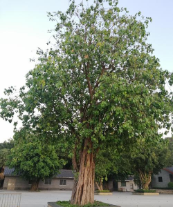 菩提树(Ficus religiosa L.),桑科榕属的常绿乔木。树皮为灰白色;嫩枝有星状毛;叶片为卵圆形,叶片的边缘有整齐锯齿;花瓣比萼片略长;退化雄蕊为花瓣状,较为短小;雄蕊比萼片稍短;子房有毛,花柱与花瓣一样齐;果实为球形,有小突起。花期7月,果期9月。由于释加牟尼于此树下成道,故名菩提树。