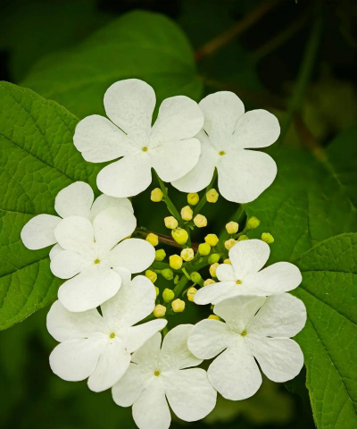 蝴蝶荚蒾(V. plicatum):花序边缘不孕花形似蝴蝶。