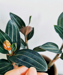 血叶兰(Ludisia discolor(Ker-Gawl.)A.Rich.)是兰科血叶兰属的多年岩石生草本植物。植株高可达25厘米;茎近基部具3-4叶;叶卵形或卵状长圆形,具五条金红色有光泽的脉,下面淡红色,叶柄下部鞘状抱茎;花序轴被柔毛,苞片卵形或卵状披针形,子房圆柱形,花白或带淡红色,中萼片卵状椭圆形,与花瓣粘贴呈兜状,侧萼片斜卵形或近椭圆形,背面前端有龙骨状突起,花瓣近半卵形,下部与蕊柱的下部合生成筒,顶端横长方形;花期2-4月。