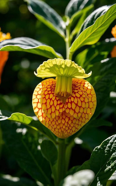 荷包花科荷包花属的多年生草本植物[5]。株高20-40厘米,茎、叶有毛茸。叶卵形,对生或轮生。花色变化丰富,单色品种具黄、白、红系各种深浅不同的花色;复色品种则在各种颜色的底色上,具有橙、粉、褐、红等色斑或色点。花形别致,具二唇花冠,小唇前伸,下唇膨胀呈荷包状,向下弯曲。花径约3-4厘米。蒴果椭圆状球形;花期2-5月;果期4-5月。