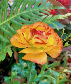 花毛茛是毛茛科属多年生草本植物。株高20—50厘米,块根纺锤形,茎单生,或少数分枝;基生叶,具长柄,形似芹菜;茎生叶小,近无柄。花单生或数朵聚生于茎顶,有红、白、橙及紫等多色,重瓣或半重瓣。花期4—5月。花毛茛属名来源于拉丁语,因该属植物喜好湿地,故得名。